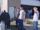 June Spires cleaning plaques in preparation for the Hog Roast. |  Christian Hoffman, Nick Boso & Ryan Sturgeon move items to old shop. |  Finishing set up at the end of the day. |  After a lot of work, the shop is ready for people. |  Trent Strous is ready to eat just a little too soon. |  Jordan Lee, Ralston Foster & Brad Bowers check on the hog. |