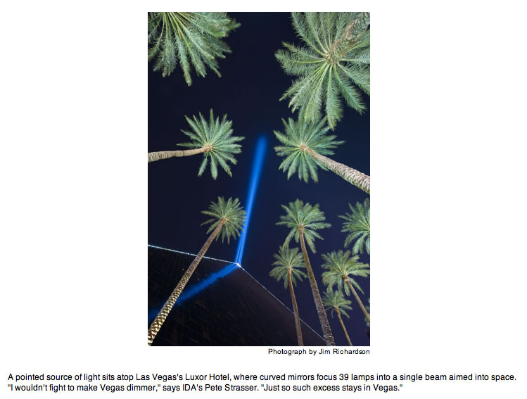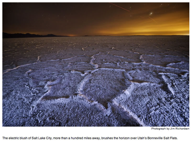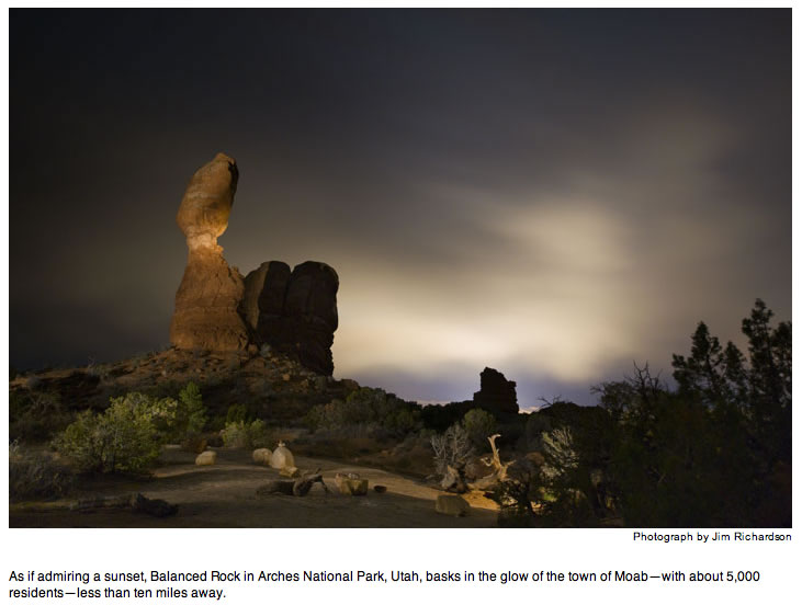 This kind of engineering is no different than damming a river. Its benefits come with consequences—called light pollution—whose effects scientists are only now beginning to study. Light pollution is largely the result of bad lighting design, which allows artificial light to shine outward and upward into the sky, where it's not wanted, instead of focusing it downward, where it is. Ill-designed lighting washes out the darkness of night and radically alters the light levels—and light rhythms—to which many forms of life, including ourselves, have adapted. Wherever human light spills into the natural world, some aspect of life—migration, reproduction, feeding—is affected.