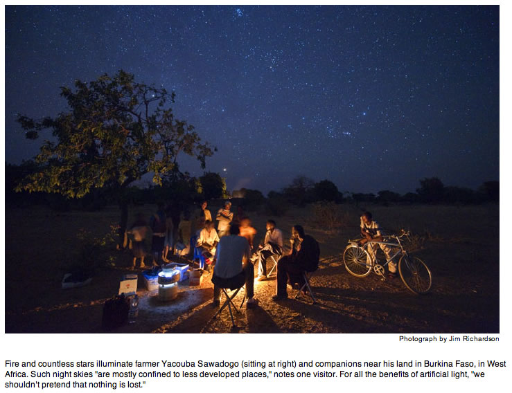For the past century or so, we've been performing an open-ended experiment on ourselves, extending the day, shortening the night, and short-circuiting the human body's sensitive response to light. The consequences of our bright new world are more readily perceptible in less adaptable creatures living in the peripheral glow of our prosperity. But for humans, too, light pollution may take a biological toll. At least one new study has suggested a direct correlation between higher rates of breast cancer in women and the nighttime brightness of their neighborhoods.